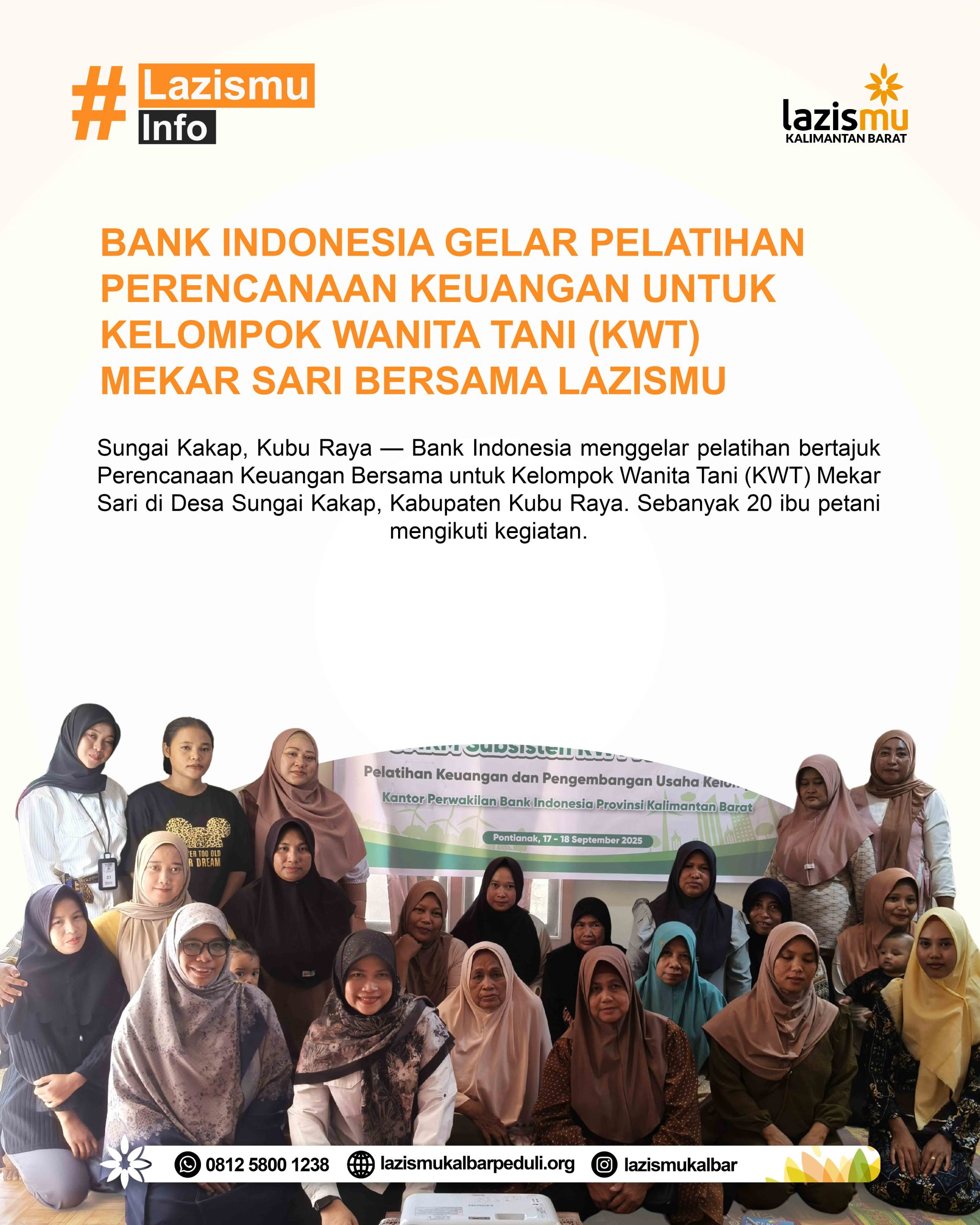 Sungai Kakap, Kubu Raya — Bank Indonesia mengadakan pelatihan bertajuk Perencanaan Keuangan Bersama untuk Kelompok Wanita Tani (KWT) Mekar Sari di Desa Sungai Kakap, Kabupaten Kubu Raya.